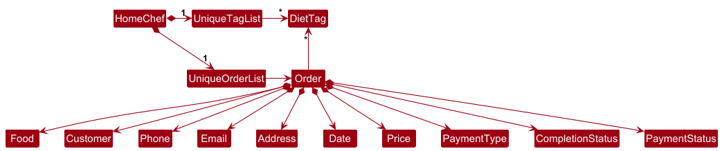 DietTag list in the HomeChef, which Order references. This allows HomeChef to only require one DietTag object per unique tag, instead of each Order needing its own DietTag objects.