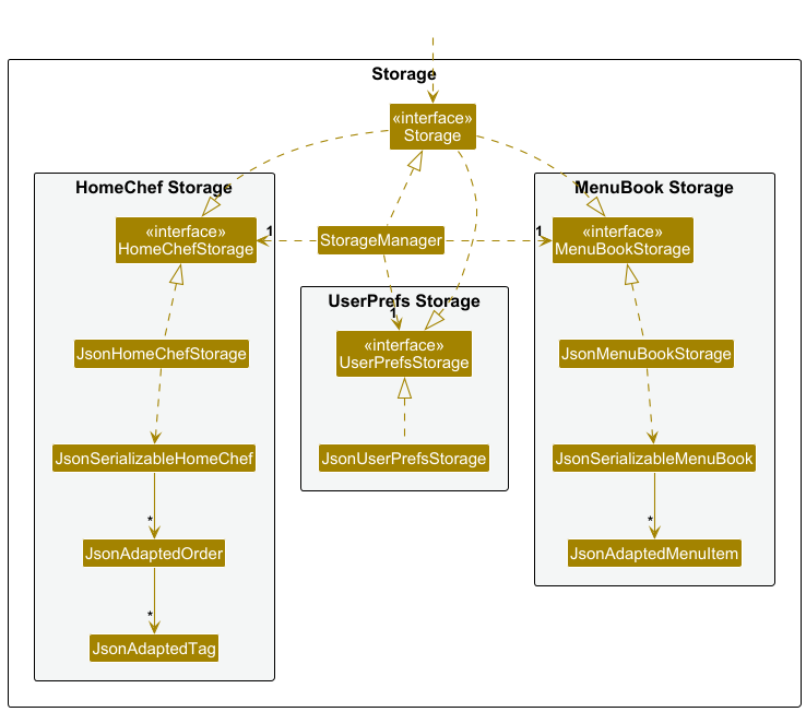 HomeChefStorage,MenuBookStorageandUserPrefStorage, which means it can be treated as any one (if only the functionality of one is needed). - depends on some classes in the